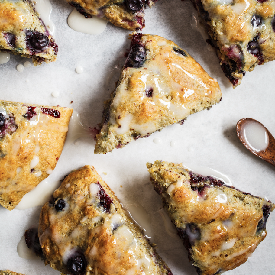 - In a large bowl, combine flours, sugar, baking soda, salt and cinnamon.