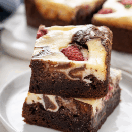 These Raspberry Cheesecake Brownies are a real showstopper dessert. The combination of rich chocolate, creamy cheesecake, and tart berries is divine– and a hit everywhere I bring it! Whether you’re baking for a celebration or just because, this recipe is guaranteed to impress with minimal effort.