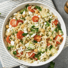 This Greek orzo pasta salad is incredibly versatile. Serve it: